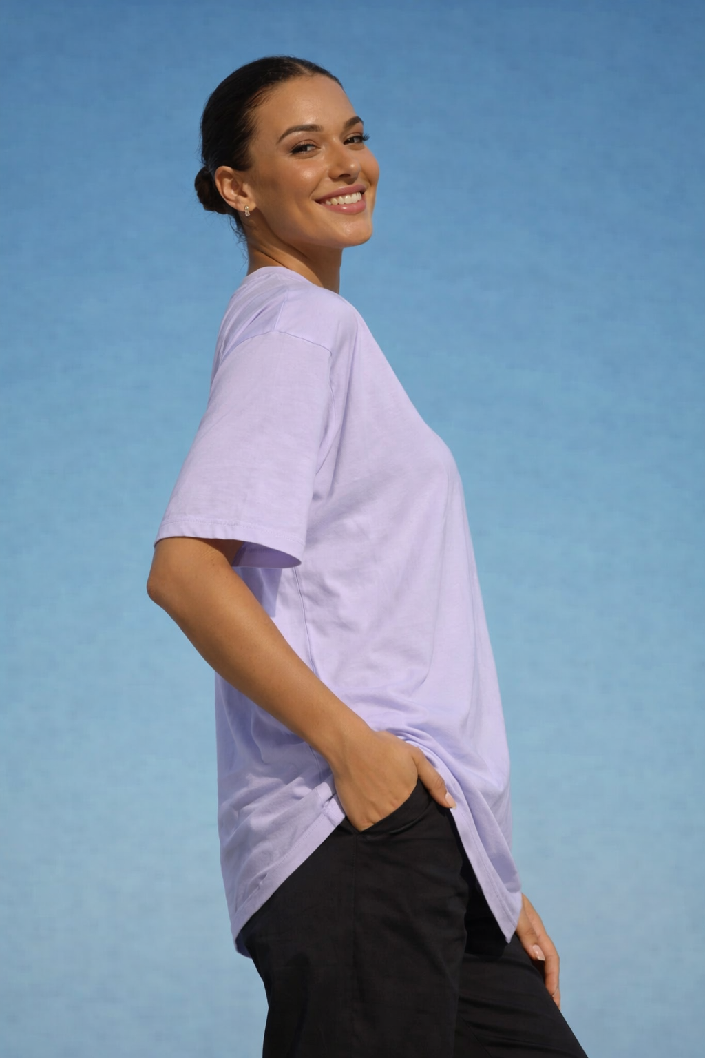 From relaxed weekends to casual outings, this lavender oversized t-shirt is a modern essential designed for comfort, simplicity, and effortless everyday style.
