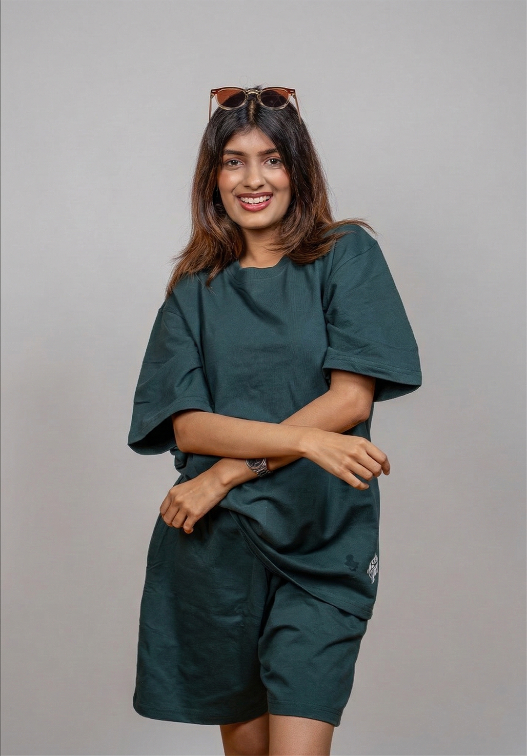 Effortless, elevated, and made for summer — our Dark Green Cotton Terry Co-ord Set is your go-to for minimal style and all-day comfort. Designed with a clean, print-free aesthetic, this matching set features an oversized t-shirt and relaxed-fit shorts, both crafted from breathable 100% cotton terry for a soft, laid-back feel.